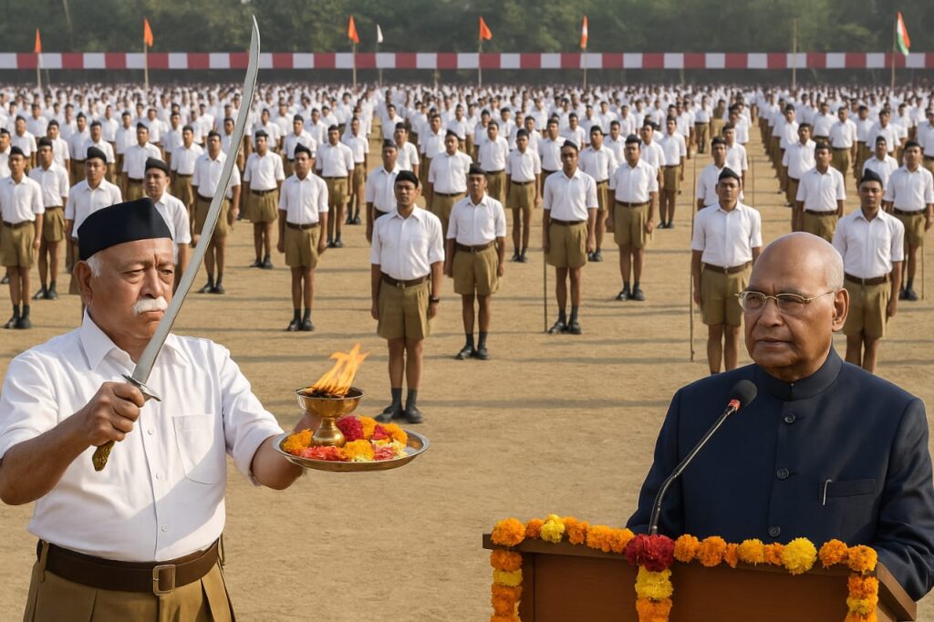 Khabari Chiraiya Desk :  नागपुर के रेशमबाग मैदान में राष्ट्रीय स्वयंसेवक संघ ने अपनी स्थापना के 100 वर्ष पूरे होने पर विजयादशमी उत्सव मनाया। सरसंघचालक मोहन भागवत ने शस्त्र पूजा से शुरुआत करते हुए देश की सुरक्षा, सामाजिक एकजुटता और आत्मनिर्भरता को समय की सबसे बड़ी जरूरत बताया। उन्होंने पहलगाम आतंकी हमले का जिक्र करते हुए कहा कि इसने हमें दोस्त-दुश्मन पहचानने का सबक दिया। इस मौके पर मुख्य अतिथि रहे पूर्व राष्ट्रपति रामनाथ कोविंद ने भी संघ की भूमिका को समाज को जोड़ने वाली शक्ति बताया।