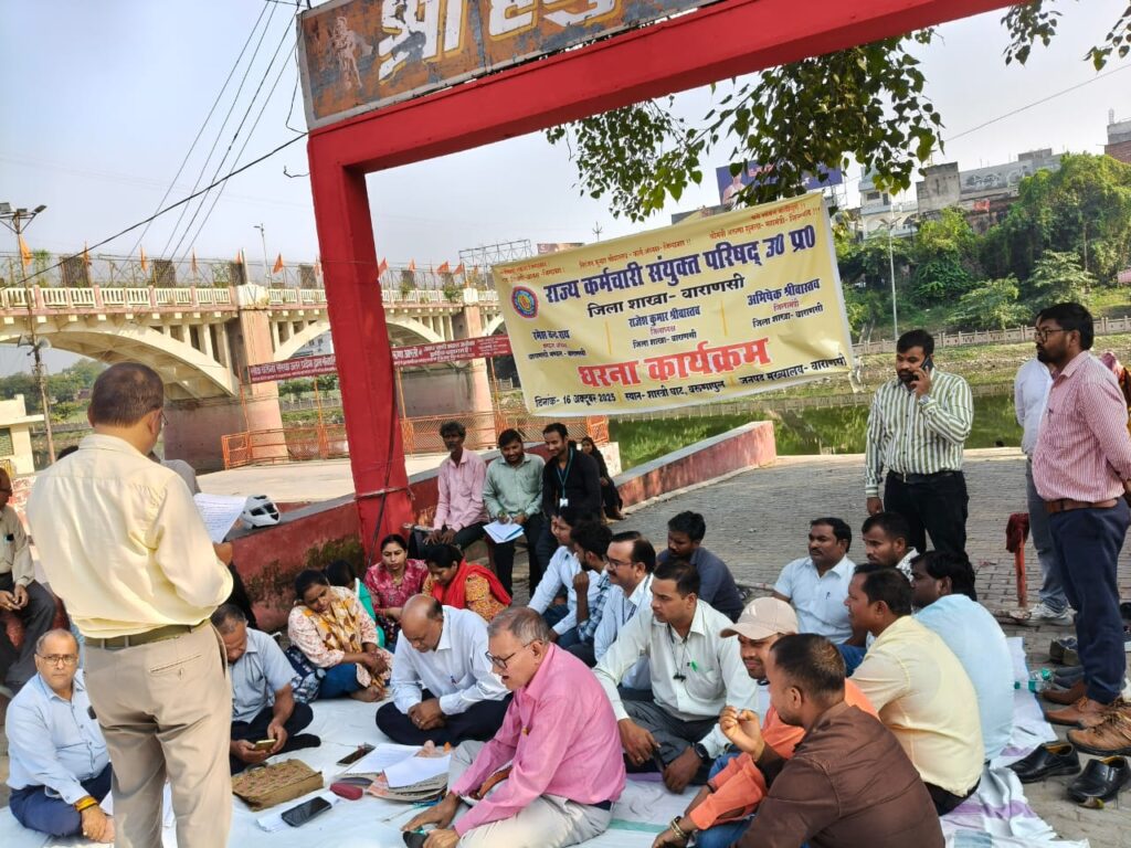 वाराणसी : राज्य कर्मचारी संयुक्त परिषद के बैनर तले कर्मचारियों ने धरना देकर अपनी आवाज बुलंद की