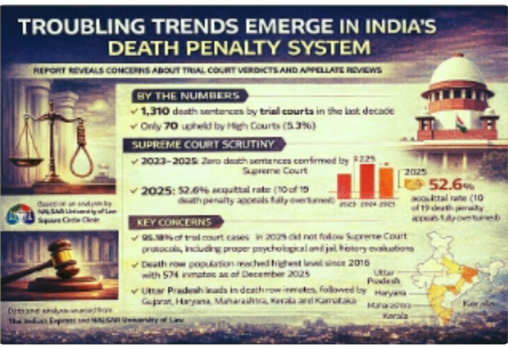 Khabari Chiraiya Desk: भारत की आपराधिक न्याय व्यवस्था में मौत की सजा को लेकर हालिया अध्ययन ने कई महत्वपूर्ण प्रश्न खड़े कर दिए हैं। एक दशक के आंकड़ों के विश्लेषण से यह संकेत मिला है कि निचली अदालतों द्वारा सुनाई गई फांसी की सजाओं का बड़ा हिस्सा उच्च न्यायालयों में टिक नहीं पा रहा है। इससे न्यायिक प्रक्रिया की गुणवत्ता और मानकों पर व्यापक बहस छिड़ गई है।