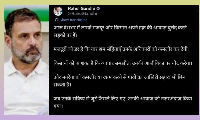 राहुल गांधी का मोदी सरकार पर हमला, श्रम संहिताओं, व्यापार समझौते और मनरेगा पर उठाए सवाल Khabari Chiraiya Desk: नई दिल्ली...